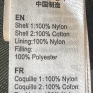 Fabric: Shell: 100% Nylon / Lining: 100% Nylon / Fill: 100% Polyester