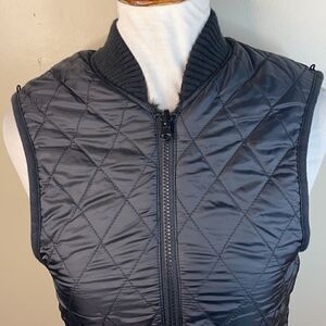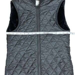 ALPHA INDUSTRIES N-3B “SLY” faux fur lined quilted full zip vest, the size tag is missing but according to the measurements, I believe it is a size small. The N-3B refers to the military meaning of a garment that can endure extreme cold weather. It’s quilted black color with an extremely soft faux fur interior. It has loops around top where a hood can hook on (no hood included) . It’s lightly worn and in great shape except the missing tags (in pics)z Warm and comfortable vest by a company that makes high quality products. You’ll love it