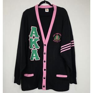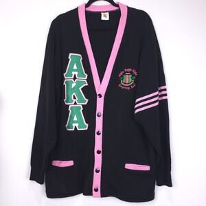 Alpha Kappa Alpha (AKA) Sorority Black Cardigan Sweater, Size 3XL, EUC