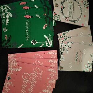 This set includes 12 cards, 3 of each color, as well as 3 pink, 3 green, and 3 ivory envelopes. The inside of each card is blank.