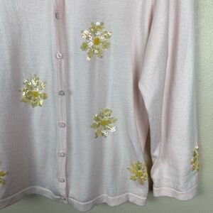 Alpha Massimo Rebecchi Pink Beaded Cardigan Floral Modest Flowers Prairie Preppy