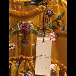 Never worn with tags! Size medium mustard yellow with layered ruffle details and floral embroidery. Lined and button neck closure.