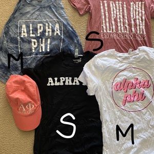 This bundle include four gently worn Alpha Phi Shirt, a lanyard and a baseball cap! It would be great for little basket fillers.