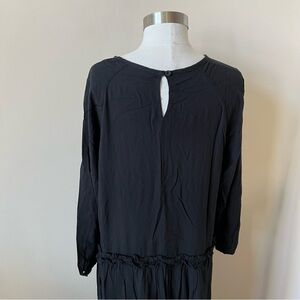 Long sleeve oversized maxi dress with tiered ruffle detail. 100% rayon. Lagenlook