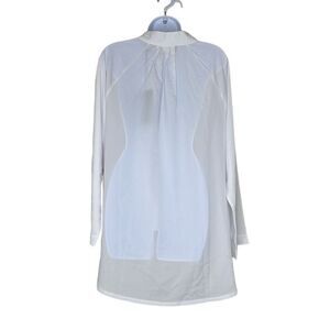 Alpha Studio M/L Button Front Blouse White Crepe Sheer Long Sleeve NWT Oversized