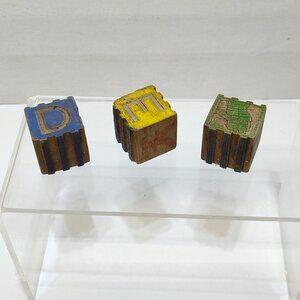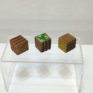 Blocks show signs of age and wear, including faded colors and slight scuffs, adding to their vintage character. Each block measures approximately 1.25 inches on all sides.