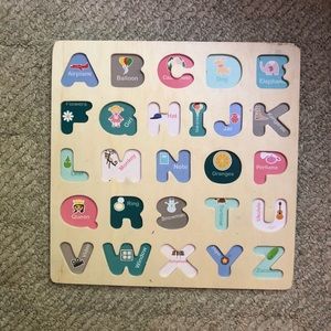 This puzzle is entirely intact and includes wonderfully bright colors. Each letter has a adorable picture hidden underneath to help children complete the puzzle!