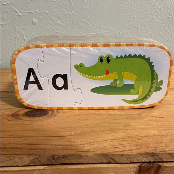 Colorful alphabet puzzles featuring the letters of the alphabet with both upper and lower case letters and playful illustrations. Fun educational piece for toddlers and preschoolers. Lightweight and easy to handle.