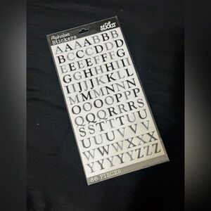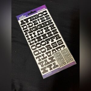 Set of alphabet stickers in black and white. Includes various fonts and styles. Includes 310 letters.