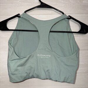 Alphalete Alphalux High Neck Sports Bra Sea Green Racerback Activewear Gym