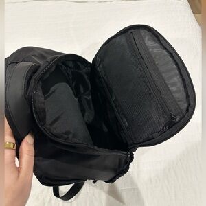 Interior features two mesh pockets. Zippered pocket (5"H x 10"W) Large pocket (8.5"H x 10"W)