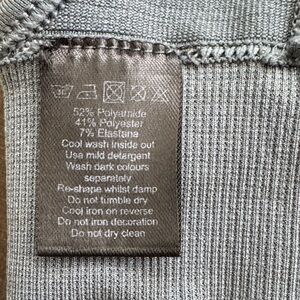 Sleek and supportive ribbed sports bra. Ideal for workouts and everyday wear. Charcoal color for a modern look. This bra is stretchy and compressive. It does have room for pads, but they are not included. Please see photos for further detail.