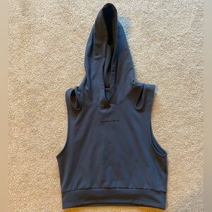 Alphalete Cropped Tank Top Womens Sz L Dark Gray Hooded Athleisure Athletic