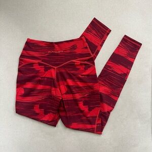 Stylish red patterned leggings. Perfect for workouts or casual wear.