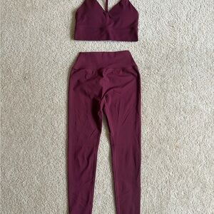 Stylish and versatile leggings set. Rich red plum color. Perfect for gym or lounging.