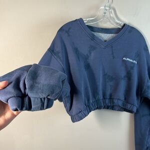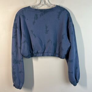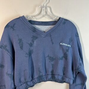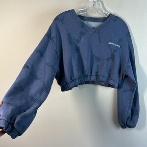 Alphalete Womens Cropped Blue Marbled Printed Sweatshirt Size Small Gym Athlete