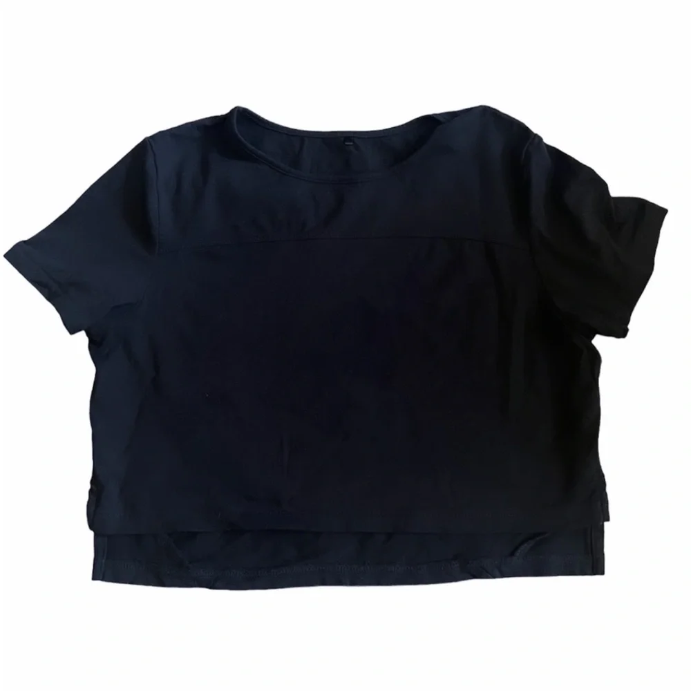 Cropped black T-shirt. Front slightly higher than back. Xs