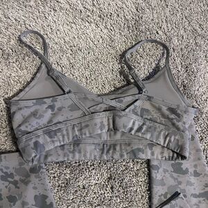 Pebble grey matching set. Surface Crossover leggings and strappy bra.