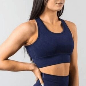 Alphalete Vault Navy Blue Cross Back Seamless Sports Bra Small
