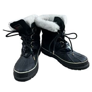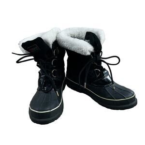 Alpine Design Black Leather Duck Boots Women’s Sz 9 Winter 7068-BLK Aspen Fur