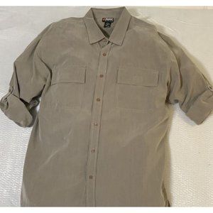 Alpine Design Men Button Up Long Sleeve Roll Tab Shirt Green Size L Resort Wear.