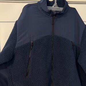Stylish navy jacket. Soft and warm material. Full zip closure. Ideal for outdoor activities.