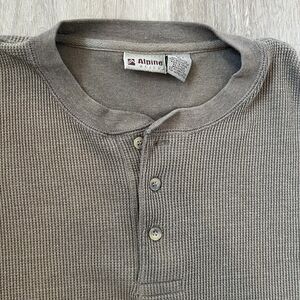 Alpine Design Mens XL Olive Green Long Sleeve Waffle Knit Henley Shirt Button