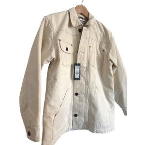 This stylish Alpine Design Quilted Lined Chore Coat is perfect for chilly days. Made with natural khaki fabric, it features a full zip and pockets. New with tags, this coat offers comfort and durability for everyday wear.