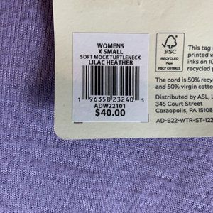 Alpine Design Shirt Women's XS Lilac Polyester Soft Turtleneck Pullover S7203.
