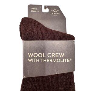 Alpine Design Wool Crew Thermolite Size Large Men's 9-12 Brown NWT Socks