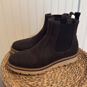 Step out in style with these sleek black Chelsea boots. Perfect for any occasion, these boots offer both comfort and elegance. Great Used Condition