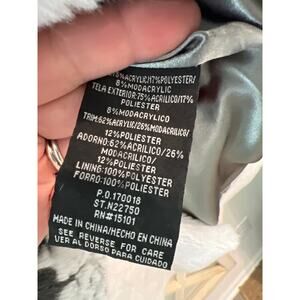 Alpine Studio size medium heavy furry fleece coat with faux fur trim around the hood. Warm and cozy. Measures 26” from armpit to armpit and 33” long.