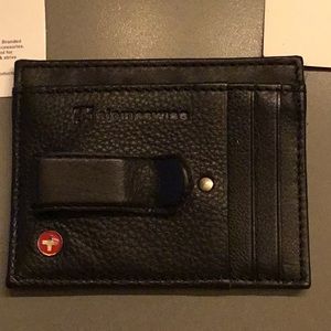 New in box RIFD credit card wallet with a money clip. New inbox. Two top openings, 3 credit card slots and 1 additional opening in the back.