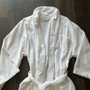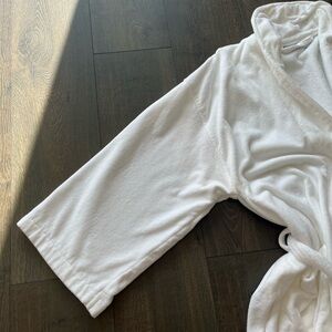 White robe with pockets and a tie belt