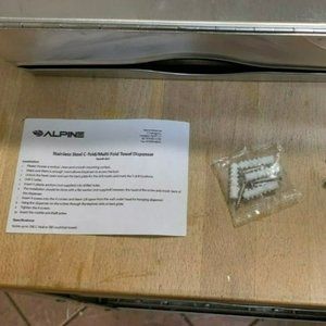 Stainless Steel Multi-Fold/C-Fold paper towel dispenser from Alpine. Towel holder has never been installed and is still in the box with keys, mounting hardware and instruction manual. See pictures for size and product information.