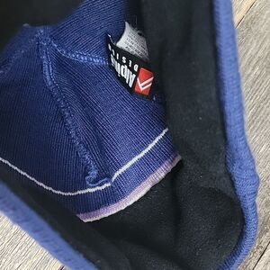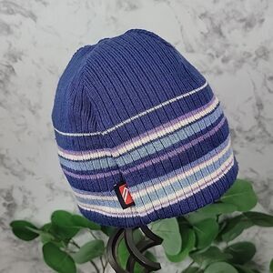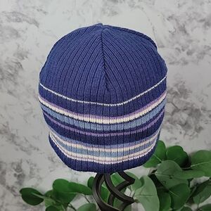 50% wool blend tight ribbed knit fabric on this winter beanie. Good pre-owned condition.