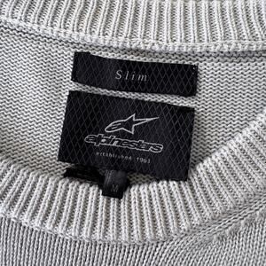 Alpinestars Slim Knit Sweater M Gray Textured Crewneck Minimalist Made in Italy Moto Casual