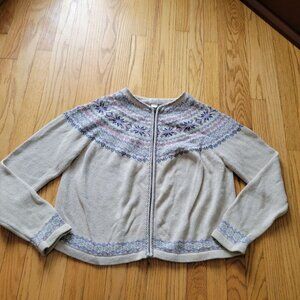 Alps Cream Pink Purple Fair Isle Snowflake zip Cardigan XL