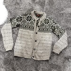 This Alps Fine Women's Apparel vintage sweater is an essential winter wardrobe staple. The collarless design and crew neckline make it a great choice for casual occasions. It's cozy and has beautiful metal buttons that elevate the sweater and it has a classic design making it perfect for cold weather.