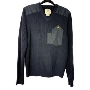 Alps & Meters Patrol Sweater Men’s M Navy Merino Wool Canvas Panel Ski Style