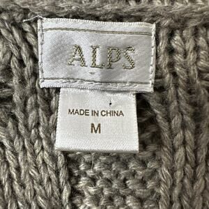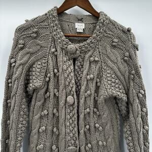 Alps Sweater Womens Medium Beige Button Bobbles Chunky Cable Cardigan Wool Poms