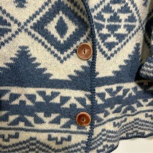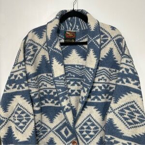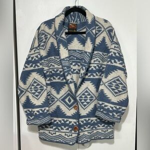 Vintage Alps Fine Women’s Apparel size Large 100% Wool Blue and Cream Southwestern Style Chore Cardigan Jacket.