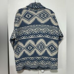 Alps Women Large 100% Wool Blue Cream Southwestern Style Chore Cardigan Jacket
