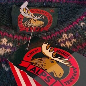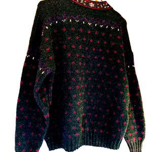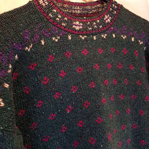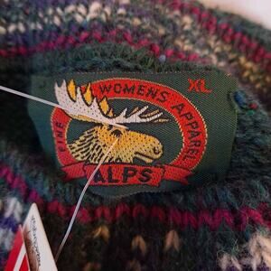 Alps Women's Pullover Sweater Green Pink Wool Blend Fair Isle Long Sleeve XL New
