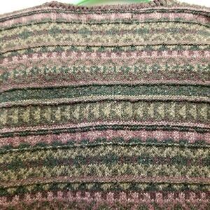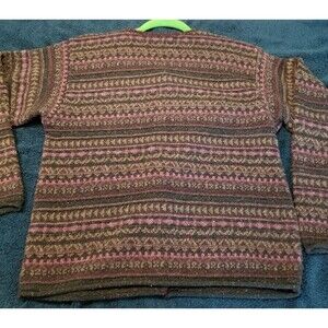 The beautiful Fair Isle pattern knit design is complemented by a tasteful crew neck and long sleeves with metal buttons. Preowned in very good condition. Any defects noted in photos. See photos for details on condition and measurements. It is wool, but tag ia unreadable. It is very soft, possibly mohair. But wool for sure, could be a wool blend. Not sure. Please scrutinize photos carefully.