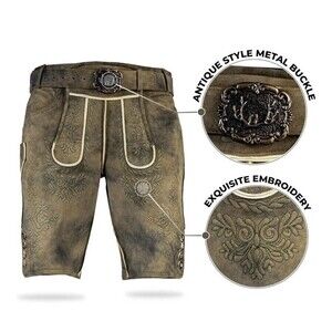 100% GENUINE LEATHER: AlpsOak mens lederhosen shorts are made from 100% genuine goat suede leather, true to size and suitable for long-term use and all-day wear. These mens lederhosen authentic shorts elevate your mens Oktoberfest outfit with a classic Bavarian look.