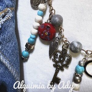 Alquimia Blue and Red Charm Necklace with Vintage Accents
