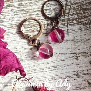 These Alquimia earrings feature stunning pink rose quartz beads, elegantly set in a vintage-inspired metal hoop. The minimalist design highlights the natural beauty of the translucent pink stones, making them a perfect accessory for any occasion.