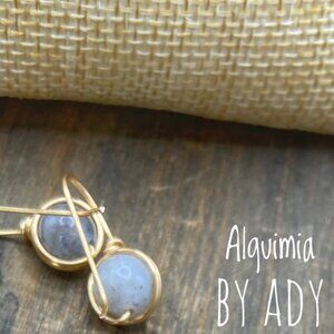 Elegant earrings with a gold finish. Features a subtle gray stone. Perfect for any occasion.