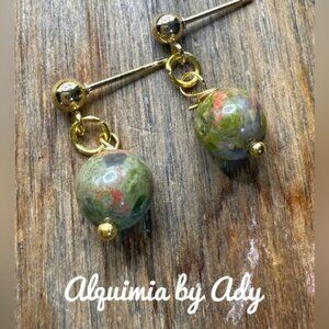 Elegant earrings with gold accents. Features multicolor stone beads. Perfect for any occasion.